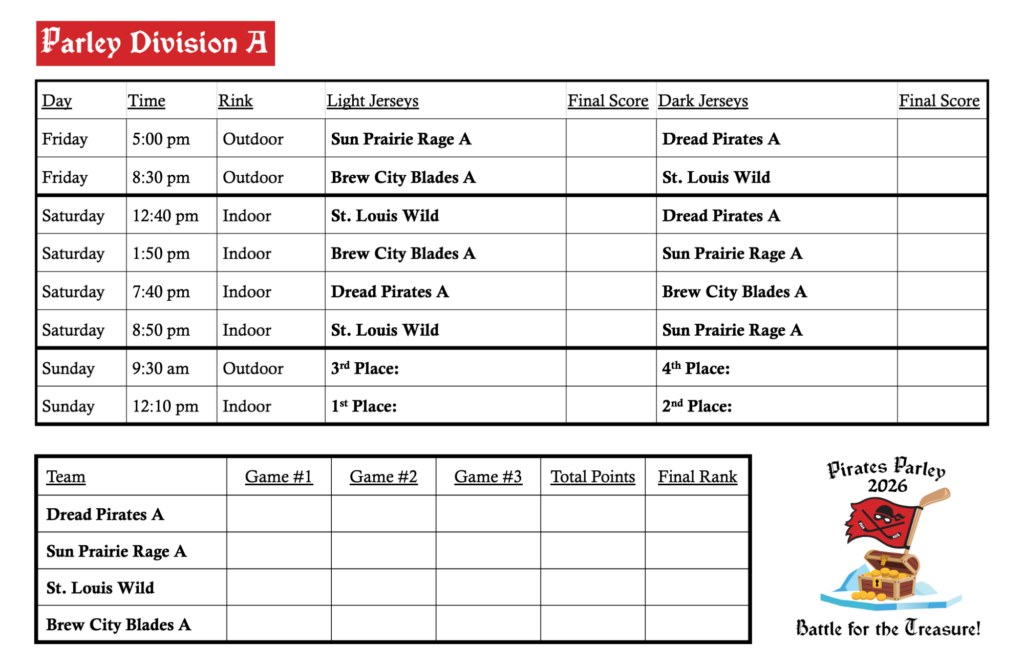 Free Agent Registration: 2026 Pirates Parley Free Agent Sign-Up. Note: We cannot guarantee you a spot, but we will be in touch regardless of whether we are able to place you on a team.