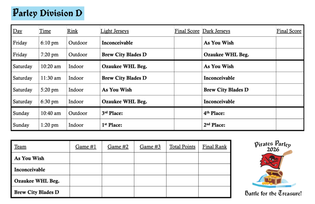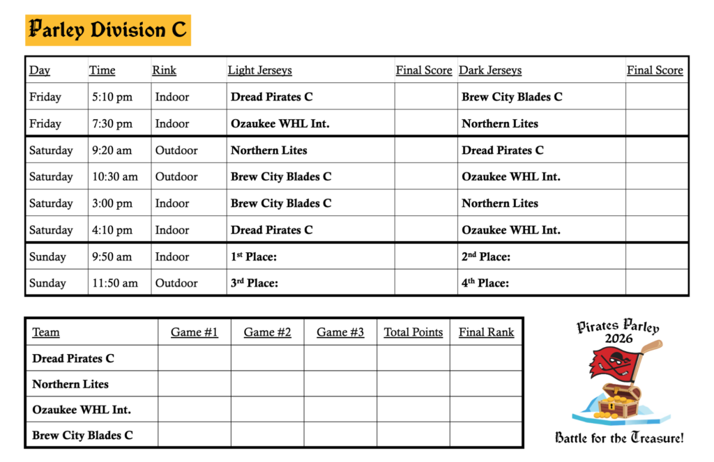 Back by popular demand, the Madison Dread Pirates are hosting our second annual Pirates Parley Tournament! This will be an Adult Women’s* Hockey Tournament with divisions for every skill level.